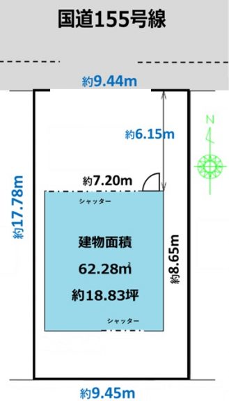 | 接道状況 | 北側公道(国道155号線)幅員約30m(歩道含む)中央分離帯あり 約9.4m接道 | ||